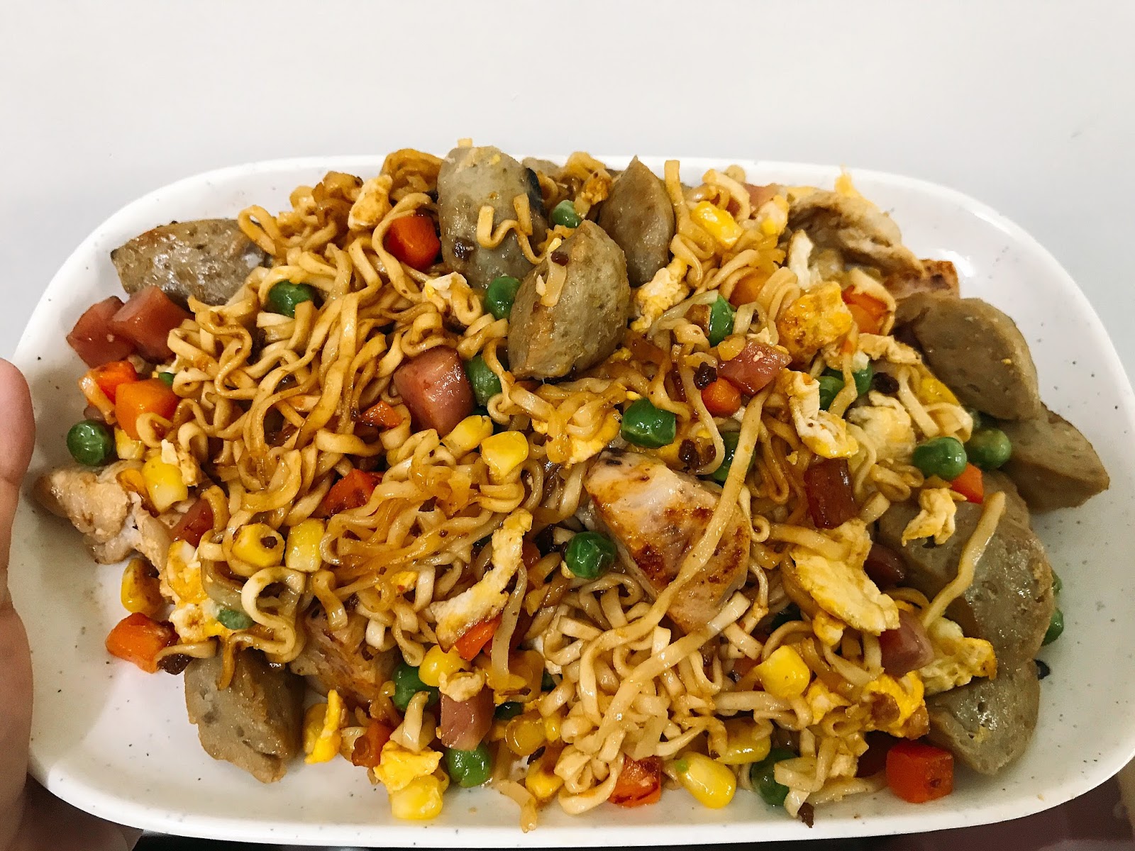 不過其實就是把自己想吃的配料全部加入泡麵中拌炒
